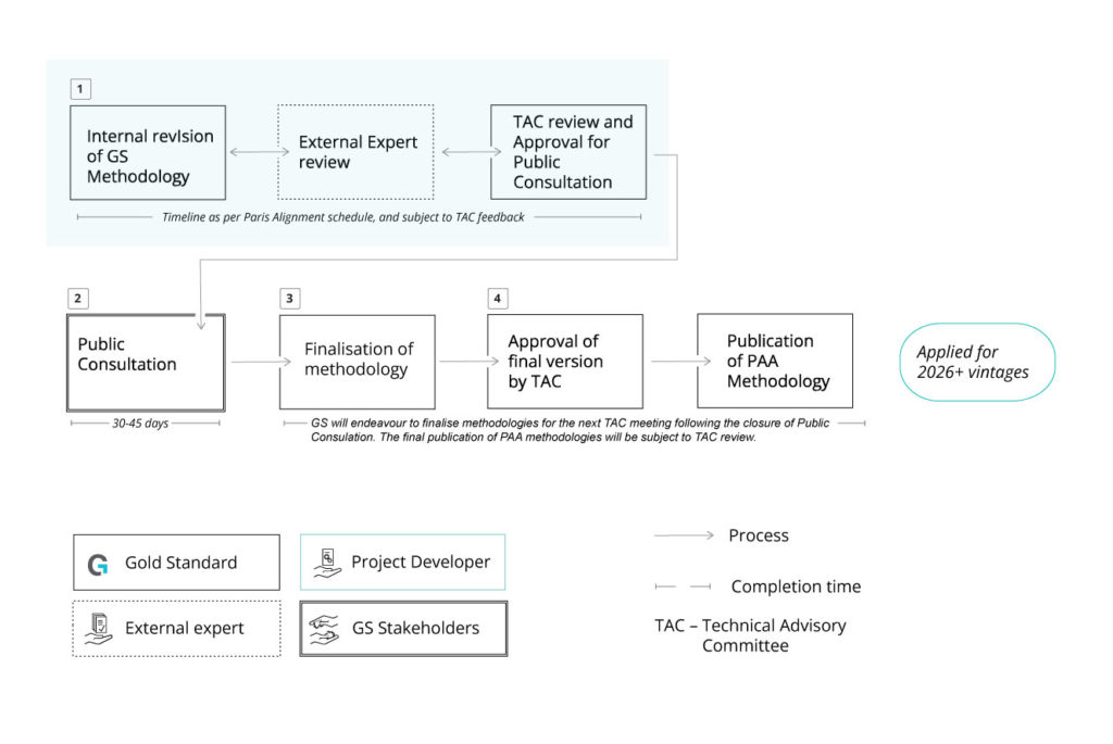 Throughout 2025, Gold Standard has developed and published new requirements for methodology development to ensure Gold Standard methodologies are compatible with the Paris Agreement with regards to additionality, baseline setting, leakage and data quality.